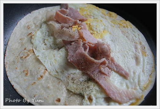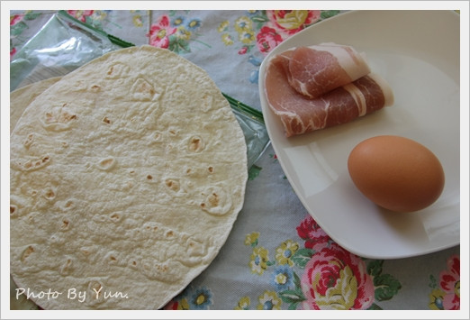 捲餅一片,蛋一顆,培根一片