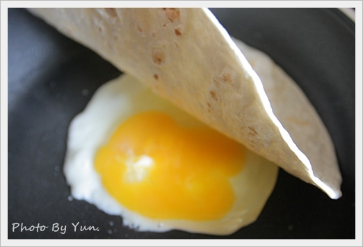 Wraps! 通稱應該是叫做捲餅吧! 就是把喜歡的東西包進去再捲起來~通常的是雞肉配生菜(肯德基有賣! 印象中也不便宜~) 在英國的超市,捲餅很普遍,一包通常1磅多~2磅,一包大約6-10片,也有全麥的健康路線! 通常早餐土司麵包吃膩了,我就會買一包捲餅來換換口味~(為了不讓他過期,就要連續吃一星期的蛋餅早餐....),剛開始是拿來像外國人一樣~包雞肉~包生菜~番茄醬~美乃滋~當做午餐吃! 某天早上,正在想早上要吃甚麼的時候剛好喵到他.....覺得她也很像蛋餅皮阿!! 就拿來煎蛋餅好了!! 很-----好------吃耶!!! 而且真的好像蛋餅喔(而且一定要準備醬油膏和辣椒醬!)