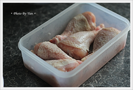 salt 鹽-----------------------1tablespoon(醃五隻雞腿)