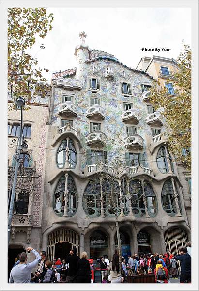 Casa Batllo是我最喜歡的高第大師的作品,是我愛的馬賽克風格! 看那牆面的磁磚拼花,根本是我的菜呀!牆面上細緻的馬賽克拼花,搭配上圓型泡泡狀的磁磚,整棟房子好像沉浸在童話故事的泡泡之中。但是面具般的窗台欄杆,和龍骨造型的花雕柱,隱喻了聖喬治屠龍的神話故事,平衡了太過童話、太過夢幻的感覺,讓這棟建築變得好有故事性。 這棟作品因為太愛了,離開前還來看了一次夜景~太美了!(門票:18.15歐,包含語音導覽,有中文!)