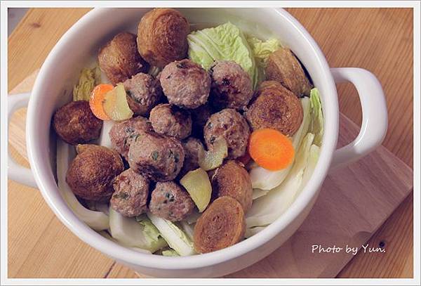 蓋鍋燉煮約15分鐘就可以啦! 入味的大白菜非常熟軟好吃,滾燙的豆輪一口咬下,不得了的燙口,又捨不得鬆開嘴巴,肉丸子則是一如往常的軟嫩多汁。清甜帶有薑味的湯頭,下點麵條拌著吃...完全不浪費的燉煮丸子,太完美了!