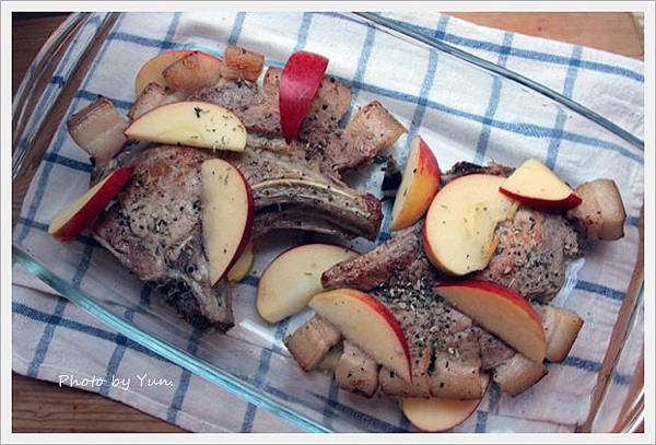 參考Jamie Oliver的Old-school pork chops with apples and sage ,雖然書中說是傳統老英國的Pub food,但我還真沒再pub看過這道菜呢!