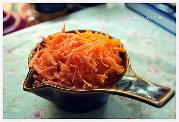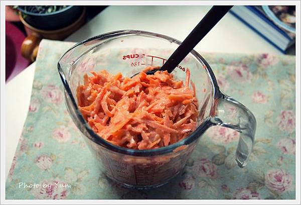 番薯和南瓜都先用剉籤板刨絲,其實也可以加點紅蘿蔔絲。