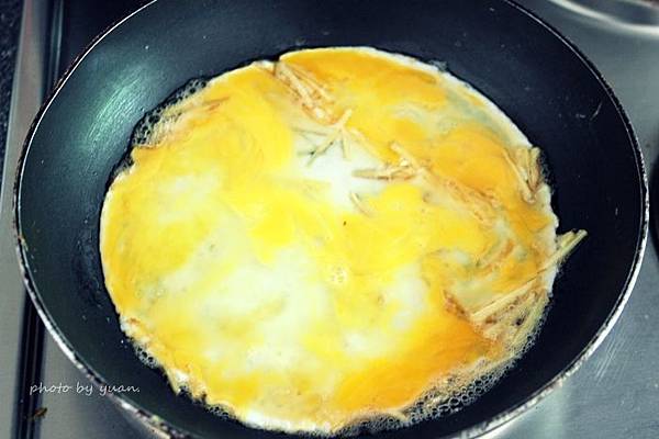 這時候可以用筷子拌炒麵線才不會都被鏟子切斷了,接著加鹽加胡椒再來一咪咪白醬油就好囉!