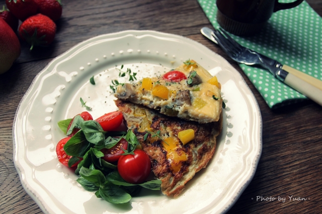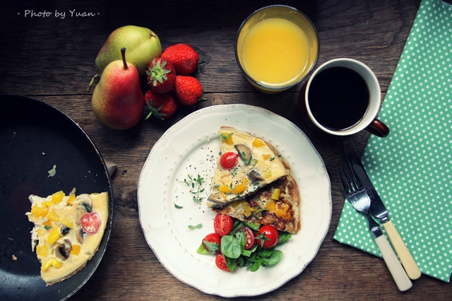 近來,其實一直試著做到至少每周1日的吃素日,但是雞蛋實在是對我太重要了! 不愛吃麵包的我,沒吃蛋就好像吃不飽一樣...也因為平常就是吃吐司、三明治,到假日當然要換換口味阿。