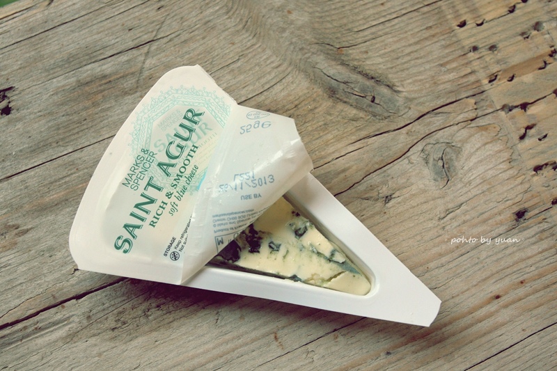 是blue cheese!!! 其實我是個cheese lover,喜歡吃各式“奶味”的軟起司、硬起司,但是真的不愛味道強烈的藍起司和羊奶起司。不過,不知道是天生反骨還是太愛吃,久久一次,會突然冒出”再給它一次機會”的念頭。(心裡總是抱著,一定有變好吃的方法!)