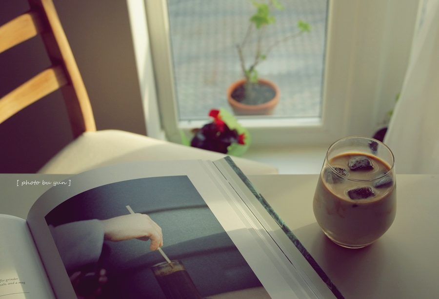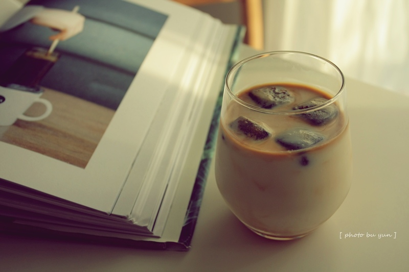 傍晚時夕陽總是斜照入屋,把客廳襯的金黃閃耀,每回返家見著總是有股滿滿的幸福感。這時先來一杯冰磚咖啡牛奶,趁著主菜的空檔翻翻最近手邊的The Kinfolk Table,果真是篇篇影像氛圍誘人,充滿了故事味兒。這甜甜奶奶的冰磚咖啡牛奶,用了4塊espresso冰塊 、牛奶約250ml、糖2茶匙,等著咖啡冰慢慢融化的過程,入口的滋味也是漸進式的越發濃烈。哎~實在是我喝不膩的幸福限定飲品!(翻著好看的書也是幸福!)