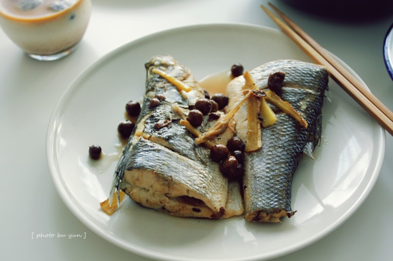 這是我們家餐桌上常常出現的中西衝突菜色! 周五晚下班去超市裡拎了兩條新鮮的sea bass(黑鱸魚),打算回家蒸魚當主餐吃。本來打算用紙包的方式蒸烤,一眼喵到那玻璃罐裡黑黑的小球們,立馬改變計劃!這鹹甘的破布子是去年聖誕節時妹妹從台灣帶來的,婆婆準備的呢。一小罐一直珍藏著使用,太快吃完會很傷心啊,不過用來蒸這肉嫩味鮮的海鱸魚正好! 剩下的沒有思考太多,順手從冰箱抓出一把菜豆斜斜切成小段,和點冷凍玉米炒蒜蓉就很香甜好吃。