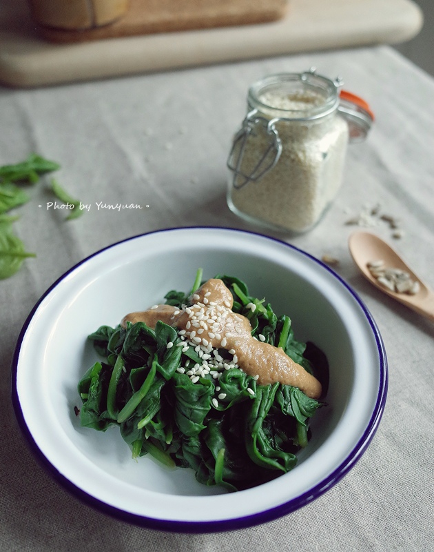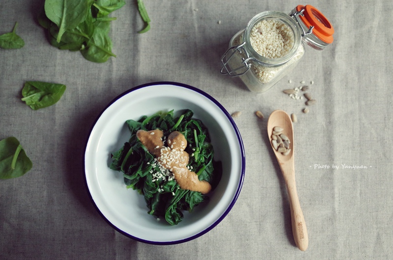 一次做少少份量,除了拌菠菜,也很適合當作涮豬肉薄片、白切肉的沾醬,夏天的餐桌就該有這款無油煙料理~