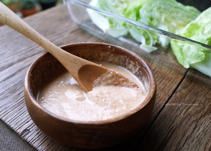 淡粉紅色的醬汁看起來有些濃稠,但其實微酸開胃,用來沾白切肉片或水煮蔬菜也很適合。
