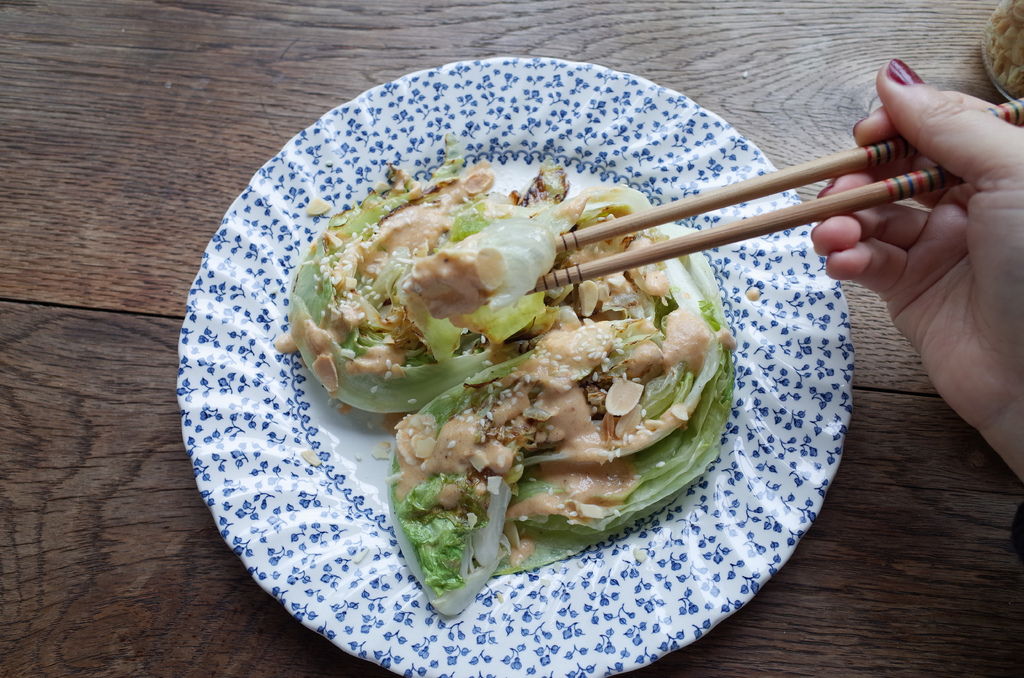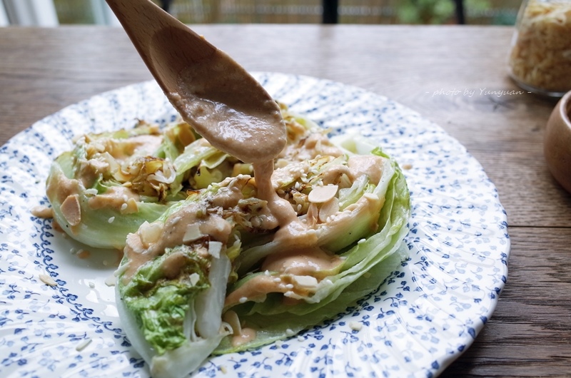 上週六和友人在倫敦見面,從中午在倫敦城的中菜餐廳、接著是SOHO TSUJIRI抹茶霜淇淋當甜點,又一路轉往High street kensington的 whole food吃了Bone Daddies的超濃口拉麵(倫敦的連鎖拉麵店),最後則是在最近超熱門的beer bar-BrewDog 喝了半pint的IPA啤酒。今天完全就是從昨晚飽到現在,可以不用進食阿! 隔天下午進廚房做了這道非常簡單、爽口的蔬食。燒烤過的蔬菜,帶有迷人的煙燻焦香味,可以帶出更深層的蔬菜甜味。配上這帶點酸勁的醬汁,其實超開胃的耶!