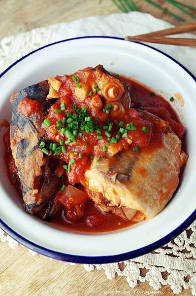 做法:使用小深鍋,中小火慢炒洋蔥丁,炒至洋蔥丁轉變為半透明色,加入蒜頭末微微爆香。再豪邁的加進一整罐的番茄罐頭、一大匙味增和辣椒丁,煮至番茄醬汁滾燙冒泡。接著加入新鮮的靖魚切塊,再度煮至滾,加點粗鹽調味,小火燉煮約30分鐘至魚肉入味或湯汁略為收乾即可。