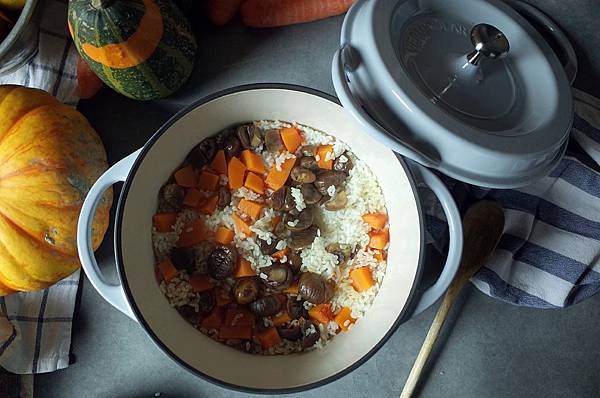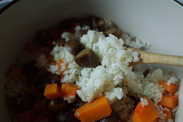 秋天的季節,超市都充斥著南瓜和栗子。所以幾乎每年這個季節我都一定會煮上好幾鍋南瓜栗子飯。有時用柴魚高湯煮,有時純粹醬油底,有時拌點麻油和七味粉,有好多好多不同吃法! 這次我用了柴魚昆布高湯包一起直接加在米飯中煮,調味則是簡單的一咪咪醬油。