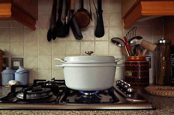 [雙把手設計] 烹煮時,攪拌匙可以輕易放在把手上,不會沒地方放。開蓋時,則可以把鍋蓋倒扣立在把手上,很直覺又方便。